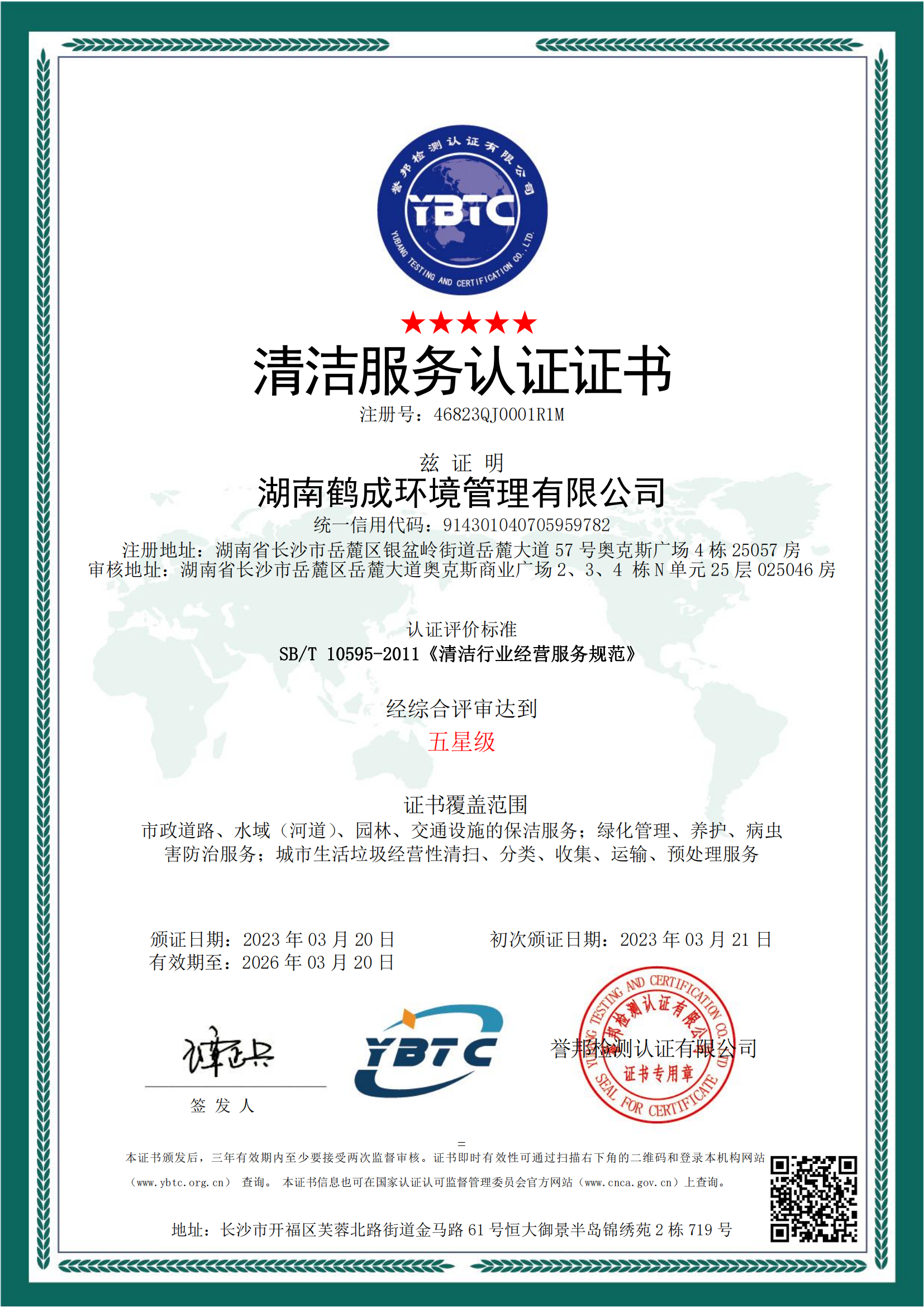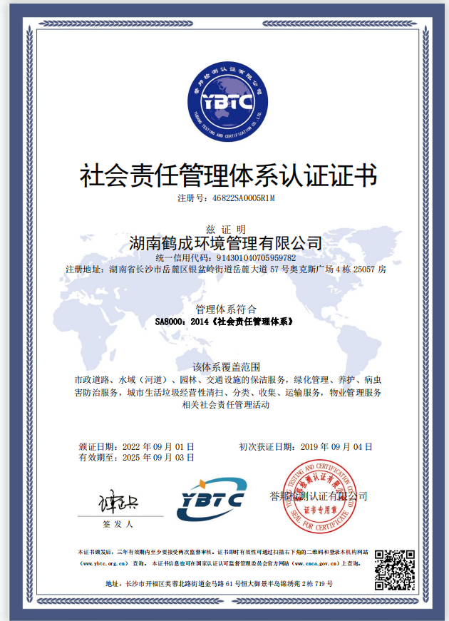 湖南鹤成环境理有限公司,成立2013q?月,原名长沙鹤成景观实业发展有限公司Q经q近几年的飞速发?各方资金的引?加之各界C会(x)力量的大力支?我司已发展成Z家实力雄厚的专业城乡环境化一体化q营商?br/>       目前公司总部自有办公面积500多^方米,座落在湖南省长沙市岳麓区奥克斯广场,现有员工3000余hQ其中管理h?26人,技术h?5人,公司配备行业优质的清z机械设备,现有多功能机扫R、大型洗扫R、自卸式垃圾清运车、高压清zR、高压水车、垃?qx)车、压~垃圾R、高温高压洗地机、新能源车、E查R{?00余辆。ؓ(f)方便理公司环卫车辆、优化出行\Uѝ高效指导环卫工作,公司搭徏了鹤成环境智慧环卫管理云q_Q对我司车辆q行数字化、专业化、精l化理。公怸要经营市攉K路清z维护、物业清z维护、园林绿化工E服务、风景园林工E设计与施工、交通设施的清洗l护、城市生zd?攉q输、绿化管理等服务目?br/>